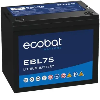EBL75 is a high quality battery from Ecobat. The dimensions of the product are 260 x 168 x 212 mm. You should use the dimensions of your old battery as a guide for your selection. Durable LiFePO4 technology for your vehicle The EBL75 has a capacity of 75 Ah. The higher the value, the more electrical charge can be stored in the battery. LiFePO4 batteries like the EBL75 are suitable for leisure and marine equipment with high energy requirements. They have a long cyclic life and are lightweight. The technology of this battery covers the energy needs of deep cycle leisure applications. You should consider this when buying Before you buy, check that the circuit and polarity of your new battery are identical to the values of the old model. The circuit shows whether the positive pole is on the right or left of the battery. To determine this, position the battery so that the poles are facing you. With the EBL75, the circuit is , so the positive pole is on the right.