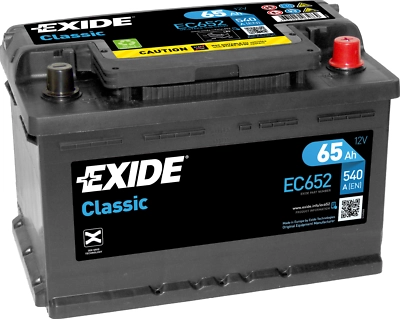 The EC652 is a high quality battery from Exide. The cold cranking current of the battery is 540 A. The dimensions of the product are 278 x 175 x 175 mm. You should use the dimensions of your old battery as a guide for your selection. Durable Wet technology for your vehicle The EC652 has a capacity of 65 Ah. The higher the value, the more electrical charge can be stored in the battery. Wet batteries like the EC652 are suitable for standard vehicles with everyday energy needs. They offer reliable performance for conventional automotive use. The technology of this battery supports basic starting and power requirements. You should consider this when buying Before you buy, check that the circuit and polarity of your new battery are identical to the values of the old model. The circuit shows whether the positive pole is on the right or left of the battery. To determine this, position the battery so that the poles are facing you. With the EC652, the circuit is 0, so the positive pole is on the right.