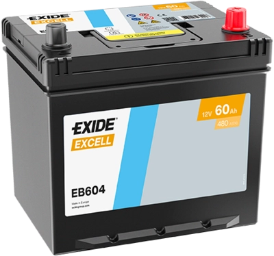 The EB604 is a high quality battery from Exide. The cold cranking current of the battery is 480 A. The dimensions of the product are 230 x 173 x 222 mm. You should use the dimensions of your old battery as a guide for your selection. Durable Wet technology for your vehicle The EB604 has a capacity of 60 Ah. The higher the value, the more electrical charge can be stored in the battery. Wet batteries like the EB604 are suitable for standard vehicles with everyday energy needs. They offer reliable performance for conventional automotive use. The technology of this battery supports basic starting and power requirements. You should consider this when buying Before you buy, check that the circuit and polarity of your new battery are identical to the values of the old model. The circuit shows whether the positive pole is on the right or left of the battery. To determine this, position the battery so that the poles are facing you. With the EB604, the circuit is 0, so the positive pole is on the right.