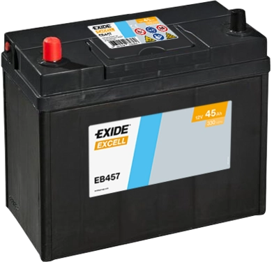 The EB457 is a high quality battery from Exide. The cold cranking current of the battery is 330 A. The dimensions of the product are 237 x 127 x 227 mm. You should use the dimensions of your old battery as a guide for your selection. Durable Wet technology for your vehicle The EB457 has a capacity of 45 Ah. The higher the value, the more electrical charge can be stored in the battery. Wet batteries like the EB457 are suitable for standard vehicles with everyday energy needs. They offer reliable performance for conventional automotive use. The technology of this battery supports basic starting and power requirements. You should consider this when buying Before you buy, check that the circuit and polarity of your new battery are identical to the values of the old model. The circuit shows whether the positive pole is on the right or left of the battery. To determine this, position the battery so that the poles are facing you. With the EB457, the circuit is 1, so the positive pole is on the left.