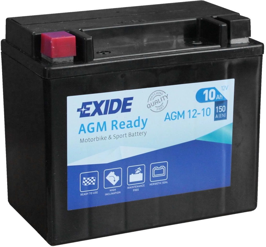 ETX14-BS is a high quality battery from Exide. The cold cranking current of the battery is 200 A. The dimensions of the product are 150 x 90 x 145 mm. You should use the dimensions of your old battery as a guide for your selection. Durable MF technology for your motorcycle The ETX14-BS has a capacity of 12 Ah. The higher the value, the more electrical charge can be stored in the battery. MF batteries like the ETX14-BS are suitable for motorcycles with standard energy needs. They offer reliable performance and are maintenance-free. The technology of this battery covers the starting requirements of motorcycles. You should consider this when buying Before you buy, check that the circuit and polarity of your new battery are identical to the values of the old model. The circuit shows whether the positive pole is on the right or left of the battery. To determine this, position the battery so that the poles are facing you. With the ETX14-BS, the circuit is 1, so the positive pole is on the left.