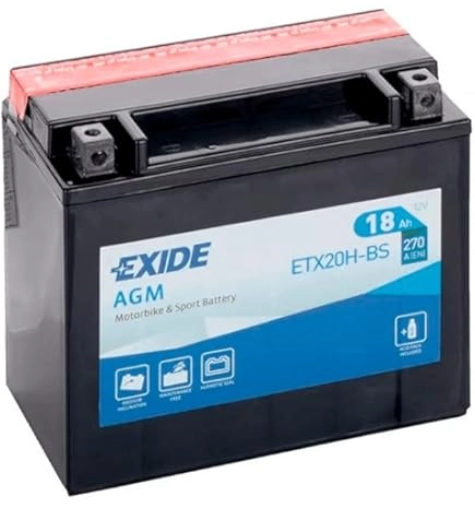 The ETX20HL-BS is a high quality battery from Exide. The cold cranking current of the battery is 270 A. The dimensions of the product are 175 x 90 x 155 mm. You should use the dimensions of your old battery as a guide for your selection.Durable MF technology for your vehicleThe ETX20HL-BS has a capacity of 18 Ah. The higher the value, the more electrical charge can be stored in the battery.MF batteries like the ETX20HL-BS are sealed and maintenance-free, great for motorcycles. They ensure dependable starts and resist vibration well.You should consider this when buying