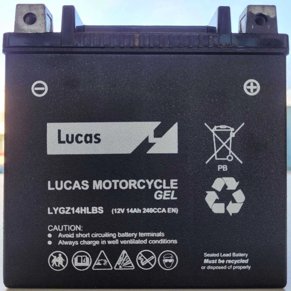 LYGZ14HBS is a high quality battery from Lucas. The cold cranking current of the battery is 240 A. The dimensions of the product are 149 x 87 x 144 mm. You should use the dimensions of your old battery as a guide for your selection.Durable Gel technology for your vehicleThe LYGZ14HBS has a capacity of 14 Ah. The higher the value, the more electrical charge can be stored in the battery.Gel batteries like the LYGZ14HBS are maintenance-free and vibration-resistant, perfect for motorcycles. They provide consistent starting power in extreme conditions.You should consider this when buyingBefore you buy, check that the circuit and polarity of your new battery are identical to the values of the old model. The circuit shows whether the positive pole is on the right or left of the battery. To determine this, position the battery so that the poles are facing you. With the LYGZ14HBS, the circuit is 1, so the positive pole is on the left.
