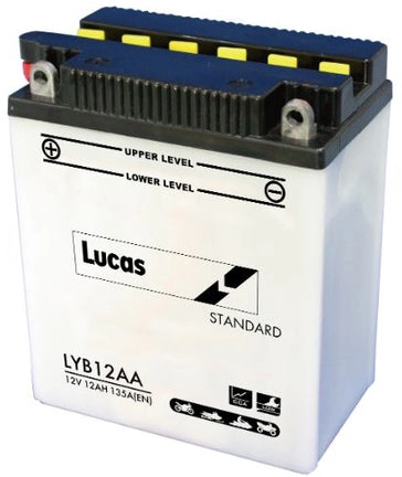 LUCAS 12V MOTORCYCLE BATTERY WITH ACID PACK LYB12AA