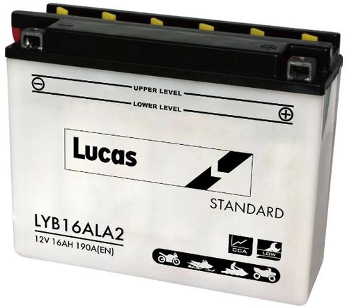 LUCAS 12V MOTORCYCLE BATTERY WITH ACID PACK LYB16ALA2