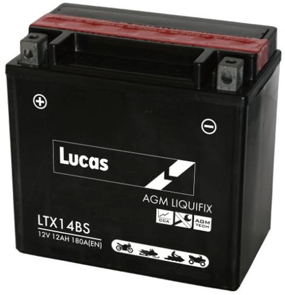 LUCAS 12V SEALED MOTORCYCLE BATTERY WITH ACID PACK LTX14BS