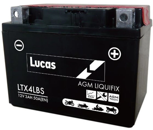 LUCAS 12V SEALED MOTORCYCLE BATTERY WITH ACID PACK LTX4LBS