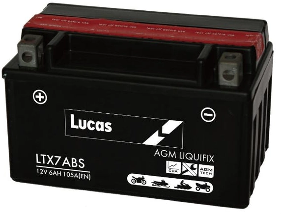 LUCAS 12V SEALED MOTORCYCLE BATTERY WITH ACID PACK LTX7ABS