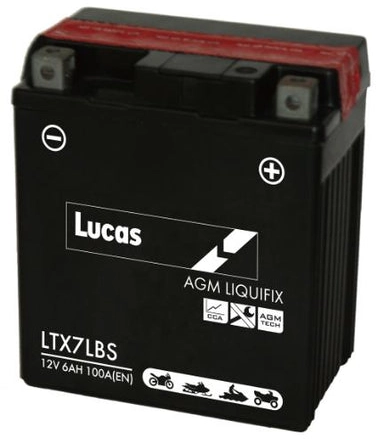LUCAS 12V SEALED MOTORCYCLE BATTERY WITH ACID PACK LTX7LBS