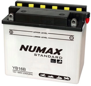 The YB16B is a high quality battery from Numax. The cold cranking current of the battery is 230 A. The dimensions of the product are 175 x 100 x 155 mm. You should use the dimensions of your old battery as a guide for your selection.Reliable wet cell technology for your vehicleThe YB16B has a capacity of 19 Ah. The higher the value, the more electrical charge can be stored in the battery.Wet batteries like the YB16B are conventional flooded models suited for motorcycles. They provide reliable power and may require top-ups.You should consider this when buyingBefore you buy, check that the circuit and polarity of your new battery are identical to the values of the old model. The circuit shows whether the positive pole is on the right or left of the battery. To determine this, position the battery so that the poles are facing you. With the YB16B, the circuit is 1, so the positive pole is on the left.