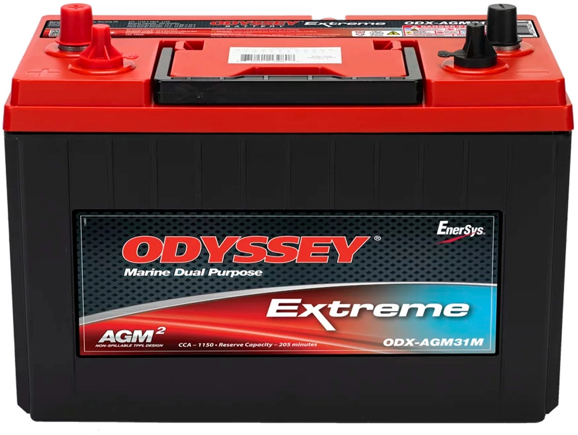 The ODX-AGM31M is a high quality battery from Odyssey. The cold cranking current of the battery is 1150 A. The dimensions of the product are 330 x 172 x 240 mm. You should use the dimensions of your old battery as a guide for your selection.Durable AGM technology for your vehicleThe ODX-AGM31M has a capacity of 100 Ah. The higher the value, the more electrical charge can be stored in the battery.AGM batteries like the ODX-AGM31M are suitable for marine dual purpose applications. They have a long cyclic life and are vibration-resistant.You should consider this when buyingBefore you buy, check that the circuit and polarity of your new battery are identical to the values of the old model. The circuit shows whether the positive pole is on the right or left of the battery. To determine this, position the battery so that the poles are facing you. With the ODX-AGM31M, the circuit is N/A.