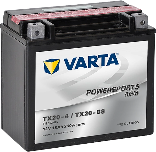 518902025 is a high quality battery from VARTA. The cold cranking current of the battery is 250 A. The dimensions of the product are 177 x 88 x 156 mm. You should use the dimensions of your old battery as a guide for your selection. Durable AGM technology for your motorcycle The 518902025 has a capacity of 18 Ah. The higher the value, the more electrical charge can be stored in the battery. AGM batteries like the 518902025 are suitable for motorcycles with high energy requirements. They have a long cyclic life. The technology of this battery covers the starting requirements of motorcycles. You should consider this when buying Before you buy, check that the circuit and polarity of your new battery are identical to the values of the old model. The circuit shows whether the positive pole is on the right or left of the battery. To determine this, position the battery so that the poles are facing you. With the 518902025, the circuit is 1, so the positive pole is on the left.