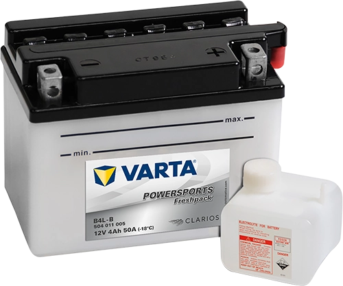The YB4L-B is a high quality battery from VARTA. The cold cranking current of the battery is 50 A. The dimensions of the product are 121 x 71 x 93 mm. You should use the dimensions of your old battery as a guide for your selection.Reliable wet cell technology for your vehicleThe YB4L-B has a capacity of 4 Ah. The higher the value, the more electrical charge can be stored in the battery.Wet batteries like the YB4L-B are conventional flooded models suited for motorcycles. They ensure good starts and may need maintenance.You should consider this when buyingBefore you buy, check that the circuit and polarity of your new battery are identical to the values of the old model. The circuit shows whether the positive pole is on the right or left of the battery. To determine this, position the battery so that the poles are facing you. With the YB4L-B, the circuit is 0, so the positive pole is on the right.