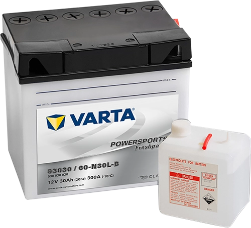 The Y60-N24L-A is a high quality battery from VARTA. The cold cranking current of the battery is 180 A. The dimensions of the product are 186 x 130 x 171 mm. You should use the dimensions of your old battery as a guide for your selection.Reliable wet cell technology for your vehicleThe Y60-N24L-A has a capacity of 30 Ah. The higher the value, the more electrical charge can be stored in the battery.Wet batteries like the Y60-N24L-A are conventional flooded models suited for motorcycles. They offer reliable power and may require top-ups.You should consider this when buyingBefore you buy, check that the circuit and polarity of your new battery are identical to the values of the old model. The circuit shows whether the positive pole is on the right or left of the battery. To determine this, position the battery so that the poles are facing you. With the Y60-N24L-A, the circuit is 0, so the positive pole is on the right.