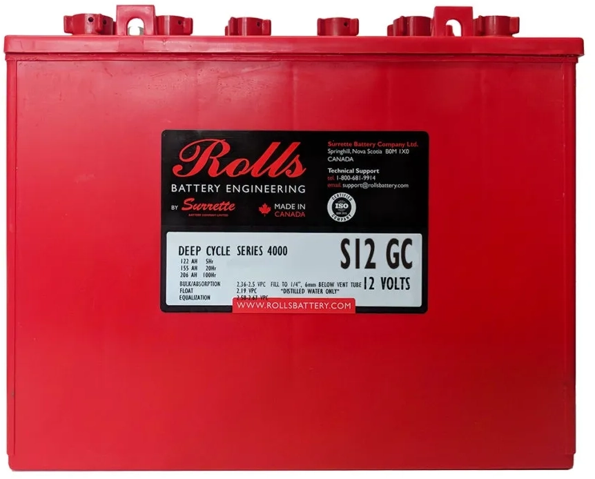 S12GC is a high quality battery from Rolls. The cold cranking current of the battery is 155 A. The dimensions of the product are 333 x 182 x 274 mm. You should use the dimensions of your old battery as a guide for your selection. Reliable Flooded Lead-Acid technology for your vehicle The S12GC has a capacity of 206 Ah. The higher the value, the more electrical charge can be stored in the battery. Flooded Lead-Acid batteries like the S12GC are designed for deep cycle renewable or marine use, providing long-lasting power. You should consider this when buying Before you buy, check that the circuit and polarity of your new battery are identical to the values of the old model. The circuit shows whether the positive pole is on the right or left of the battery. To determine this, position the battery so that the poles are facing you. With the S12GC, the circuit is N/A.