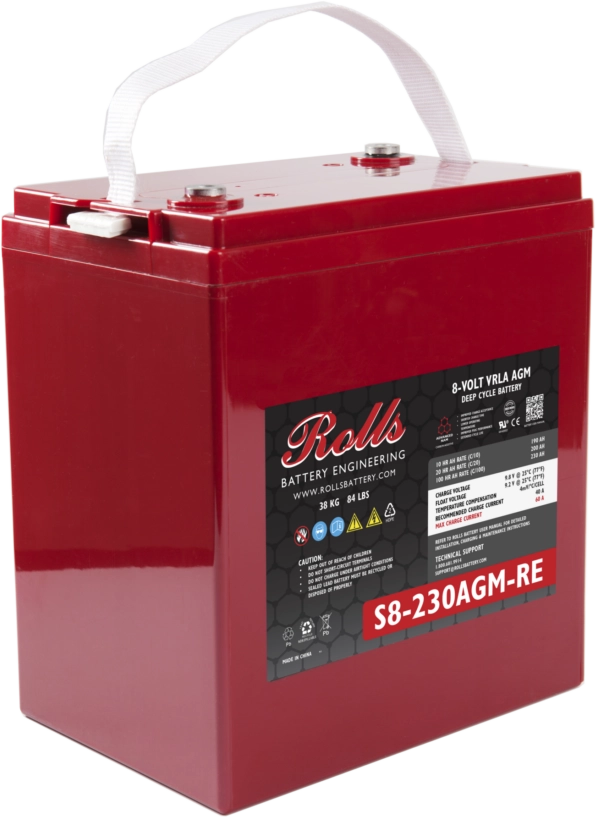 The S8-230AGM is a high quality battery from Rolls. The cold cranking current of the battery is 200 A. The dimensions of the product are 260 x 182 x 314 mm. You should use the dimensions of your old battery as a guide for your selection.Durable AGM technology for your vehicleThe S8-230AGM has a capacity of 230 Ah. The higher the value, the more electrical charge can be stored in the battery.AGM batteries like the S8-230AGM are suitable for deep cycle renewable or marine applications. They have a long cyclic life and are vibration-resistant.You should consider this when buyingBefore you buy, check that the circuit and polarity of your new battery are identical to the values of the old model. The circuit shows whether the positive pole is on the right or left of the battery. To determine this, position the battery so that the poles are facing you. With the S8-230AGM, the circuit is N/A.