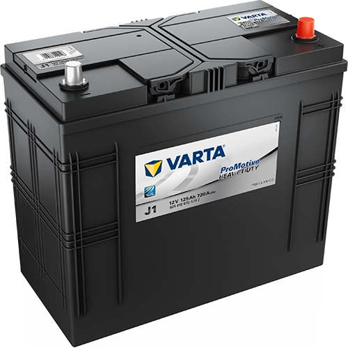 J1 is a high quality battery from VARTA. The cold cranking current of the battery is 720 A. The dimensions of the product are 349 x 175 x 290 mm. You should use the dimensions of your old battery as a guide for your selection. Durable Wet technology for your vehicle The J1 has a capacity of 125 Ah. The higher the value, the more electrical charge can be stored in the battery. Wet batteries like the J1 are suitable for heavy duty vehicles with everyday energy needs. They offer reliable performance for commercial use. The technology of this battery supports starting and power requirements in heavy duty applications. You should consider this when buying Before you buy, check that the circuit and polarity of your new battery are identical to the values of the old model. The circuit shows whether the positive pole is on the right or left of the battery. To determine this, position the battery so that the poles are facing you. With the J1, the circuit is 0, so the positive pole is on the right.