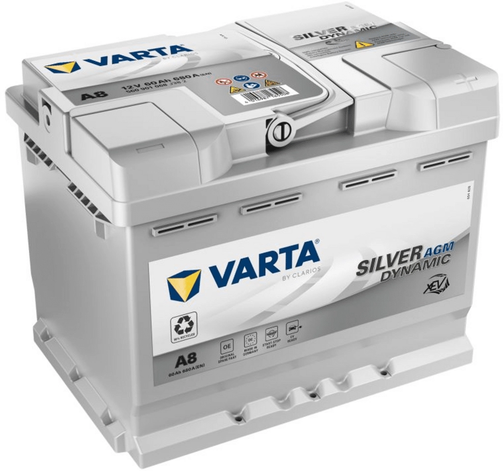 The A8 is a high quality battery from VARTA. The cold cranking current of the battery is 680 A. The dimensions of the product are 242 x 175 x 190 mm. You should use the dimensions of your old battery as a guide for your selection.Durable AGM technology for your vehicleThe A8 has a capacity of 60 Ah. The higher the value, the more electrical charge can be stored in the battery.AGM batteries like the A8 are suitable for vehicles with high energy requirements. They have a long cyclic life. The technology of this battery covers the high energy requirements of cars with start-stop systems.You should consider this when buying